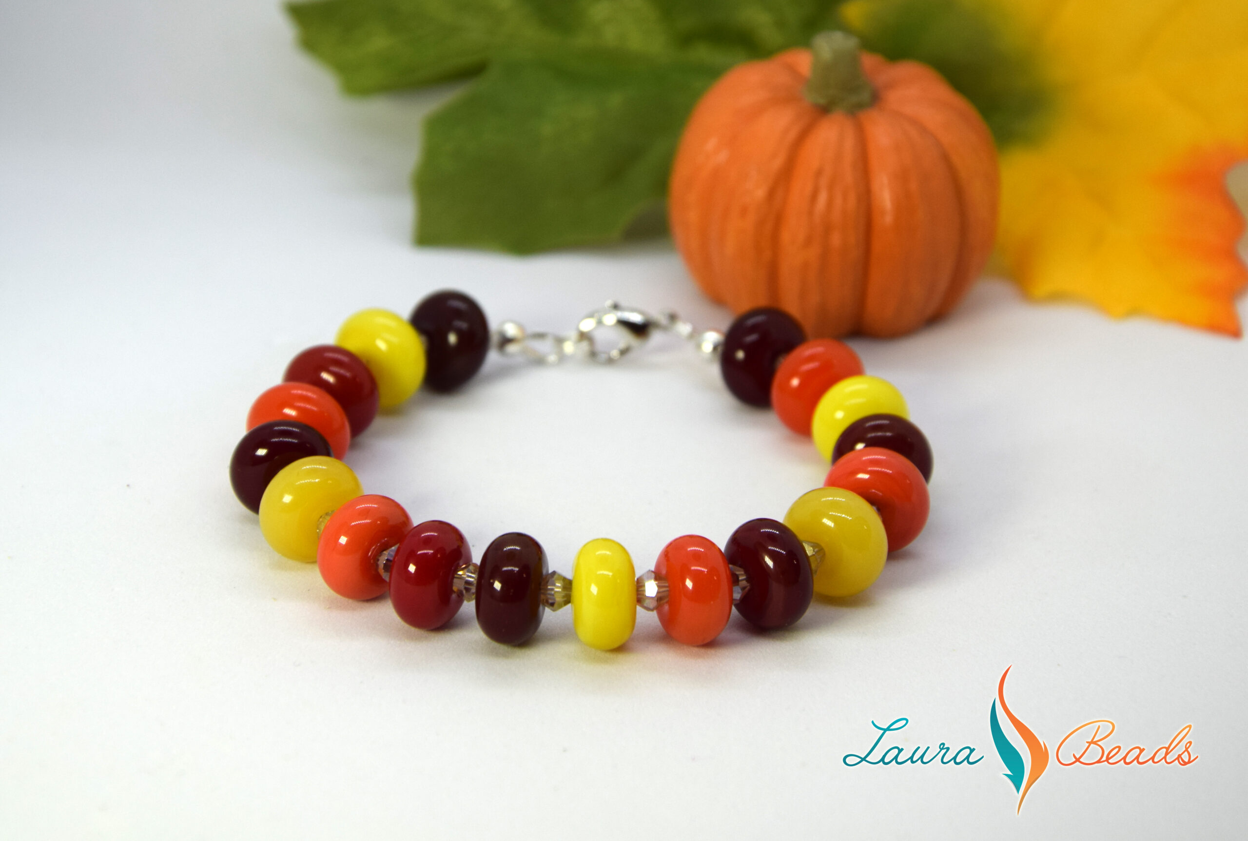 Saját készítésű egyszínű lámpagyöngyökből és cseh üveggyöngyökből készült karkötő.